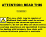 This chainsaw chain is capable of severe kickback that could result in serious injury to the user. Do not operate this chainsaw unless you have extraordinary cutting needs and experience and specialized training for dealing with kickback. Chainsaws with significantly reduced kickback potential are available. Be sure to read the labels on a chainsaw before purchasing one.